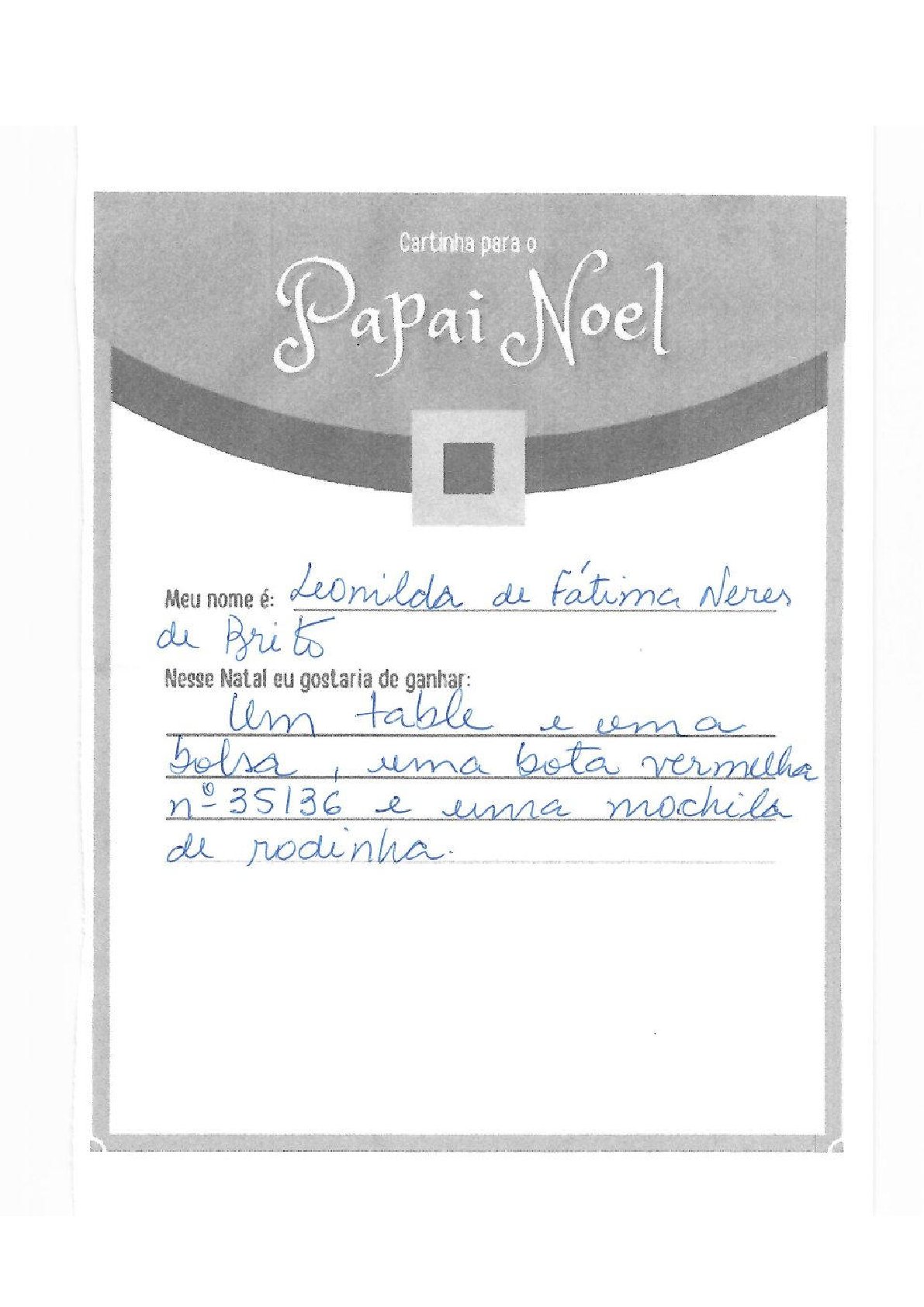 Leonilda, “Quer um tablet + bolsa + bota vermelha + mochila de rodinha!”