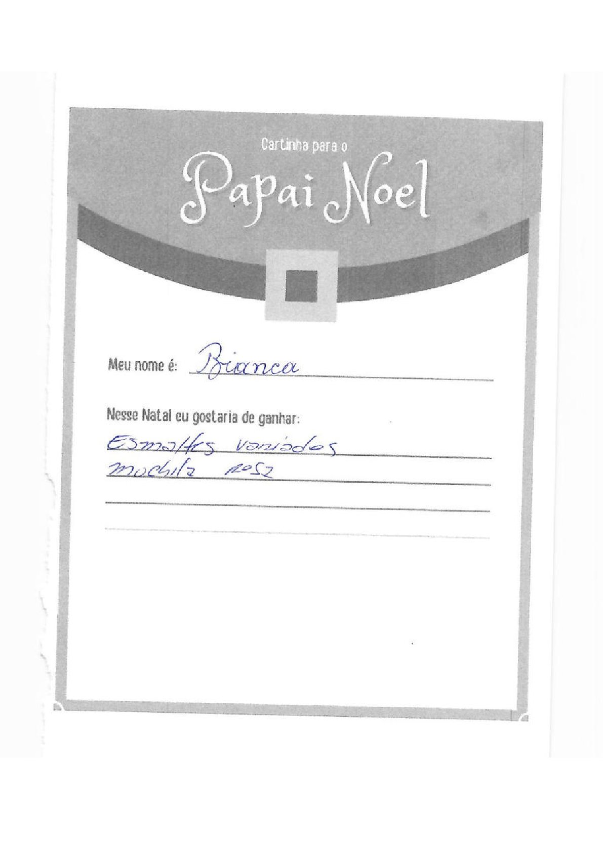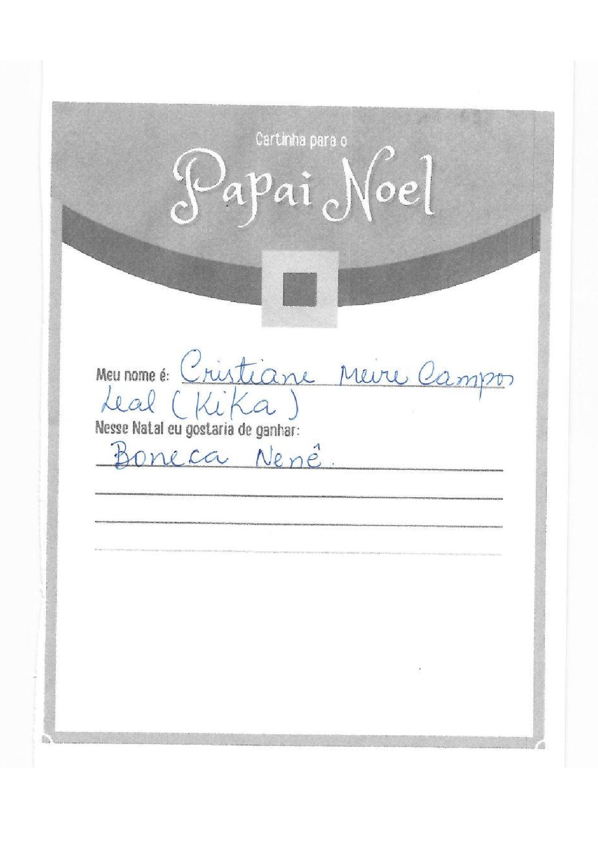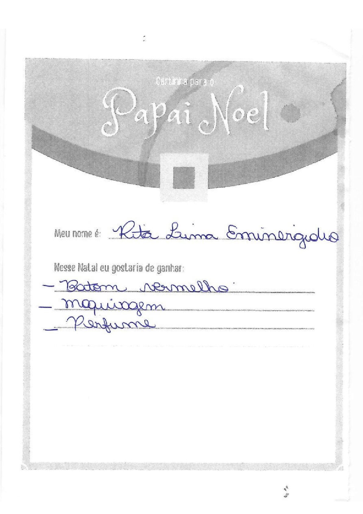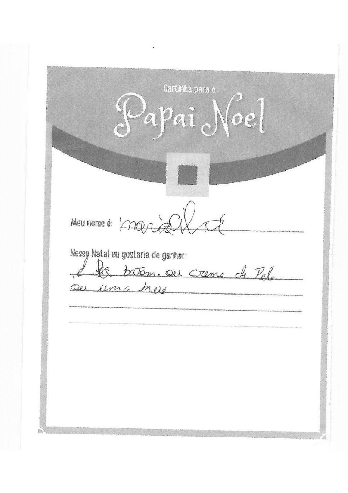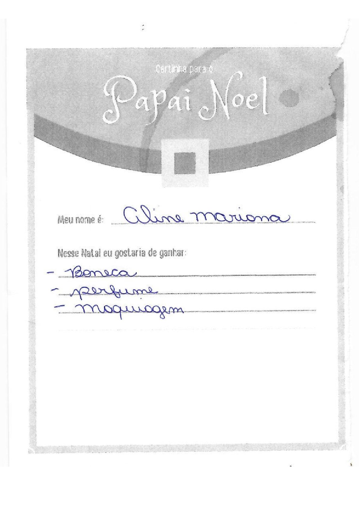 Aline, “Quer uma boneca + perfume + maquiagem!”