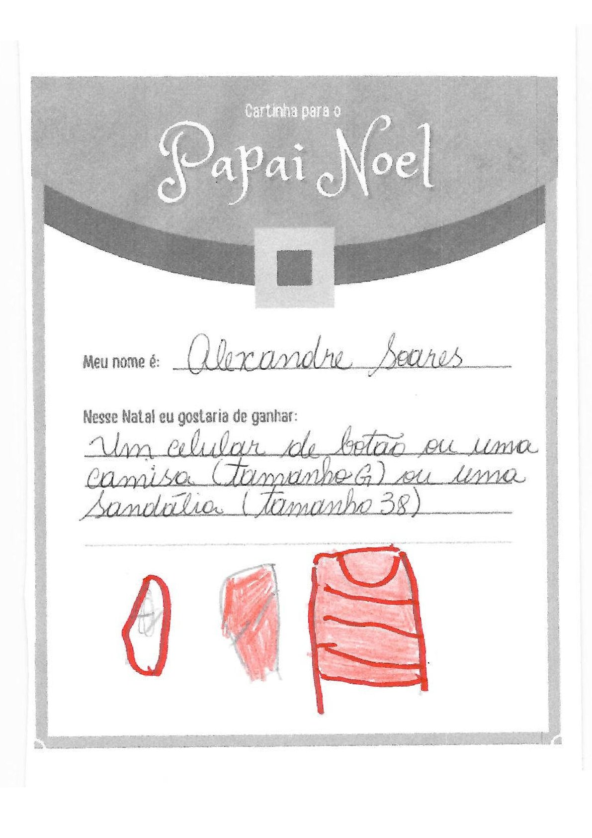 Igor Santana, “Quer lápis de cor + giz de cera + caderno de desenho!”