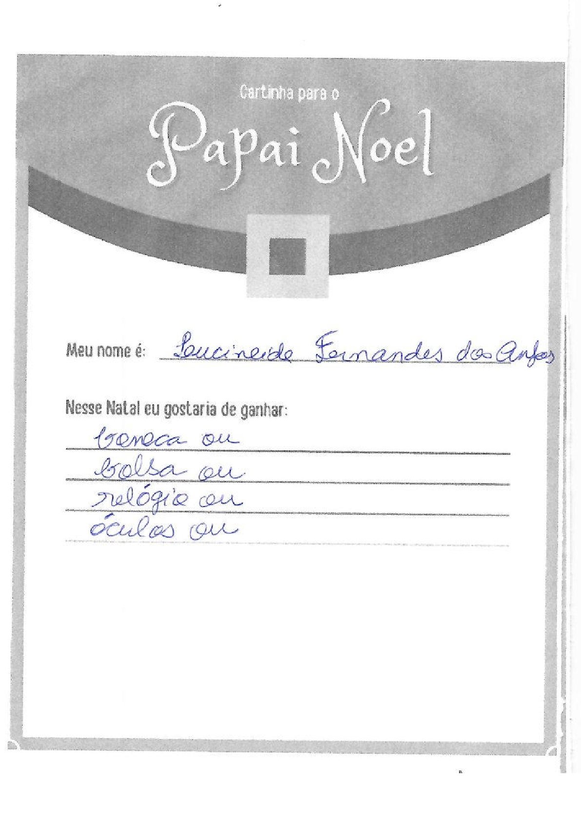 Lucimar, “Quer um tênis + bolsa + caderno e caneta!”