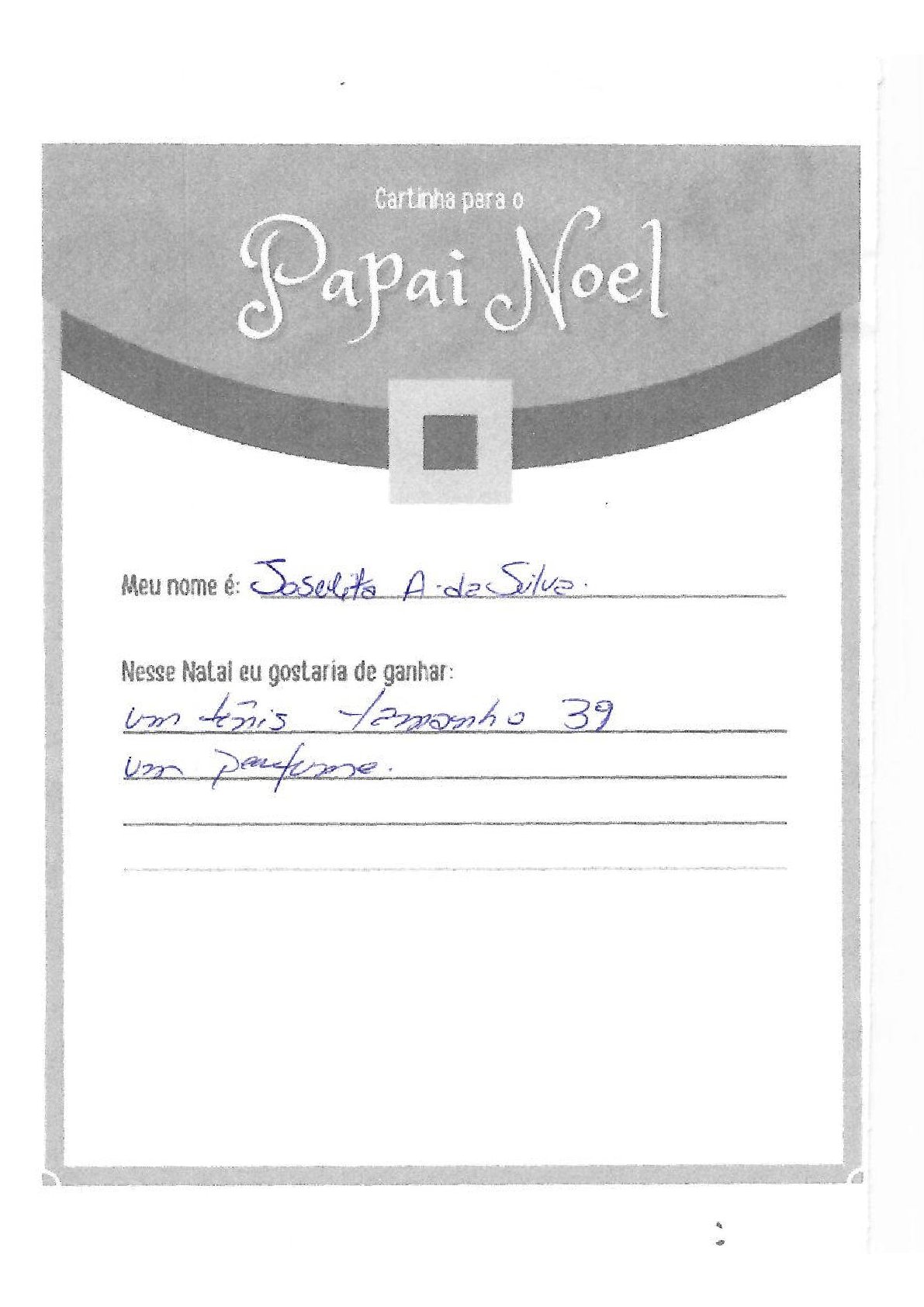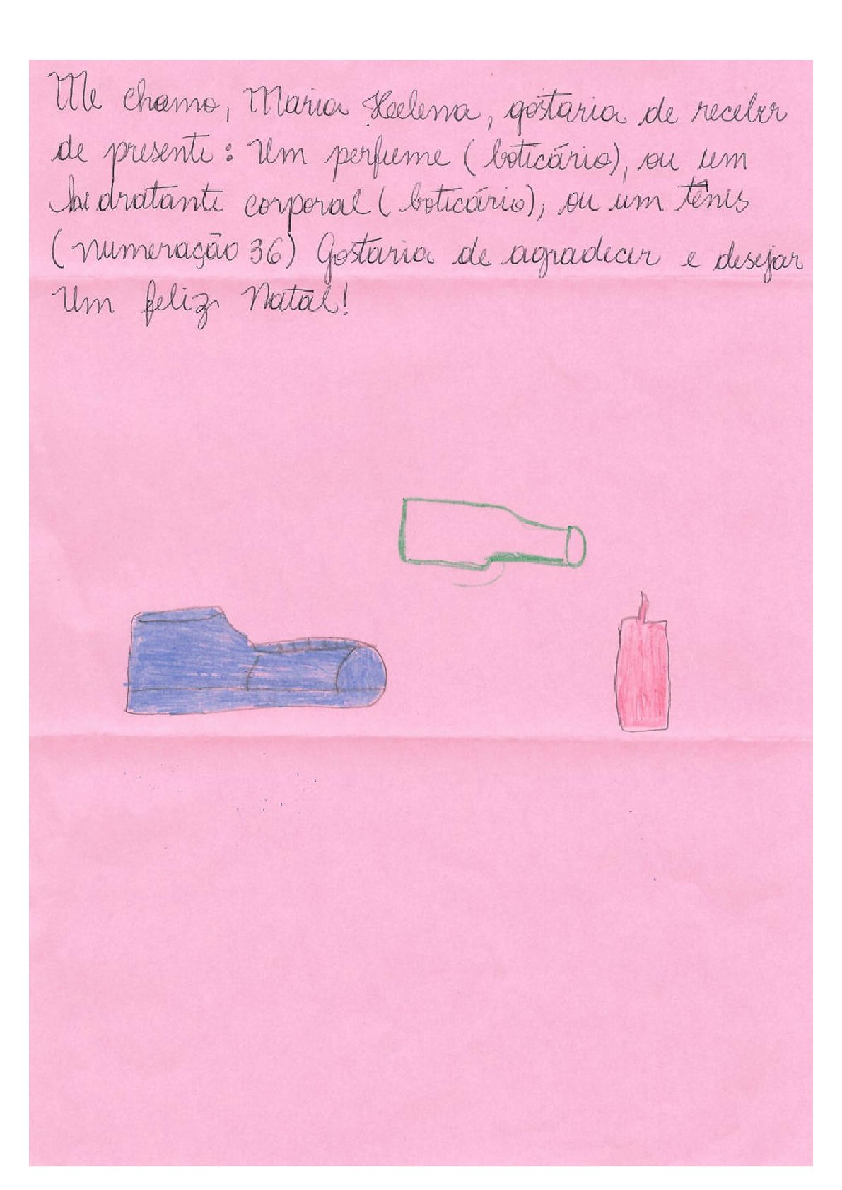 Maria Helena, “Quer um perfume ou hidratante corporal ou tênis!”