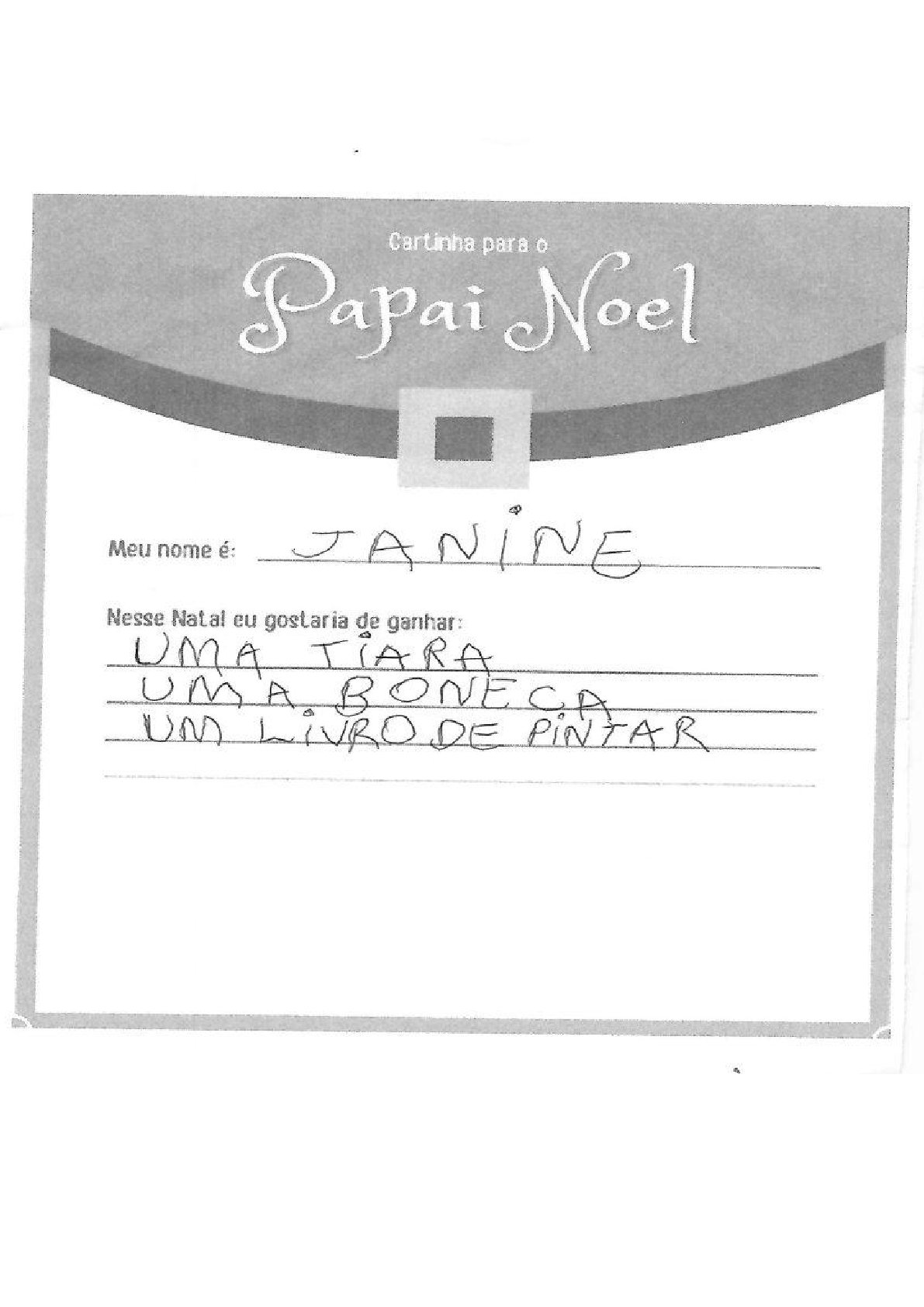 Janine, “Quer uma tiara + boneca + livro de pintar!”